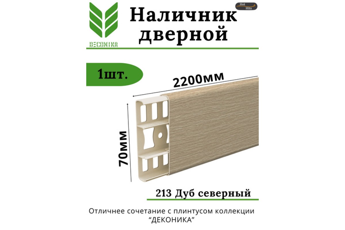 Наличник с кабель-каналом 70мм 2,2м Дуб Северный 213 Деконика