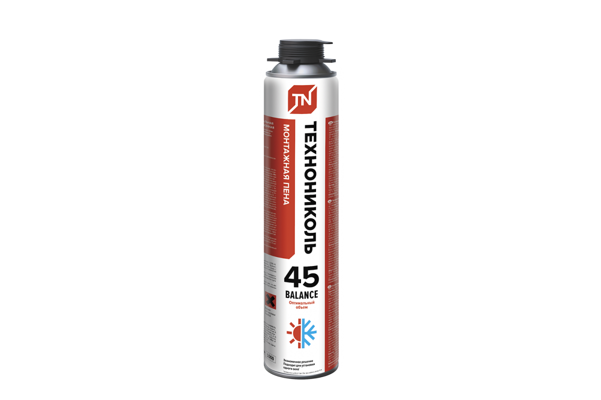 Пена монтажная профессиональная ТЕХНОНИКОЛЬ 45 BALANCE применяется для герметизации, тепло — и шумоизоляции швов, щелей, пустот, монтажа деталей при выполнении строительных и отделочных работ.